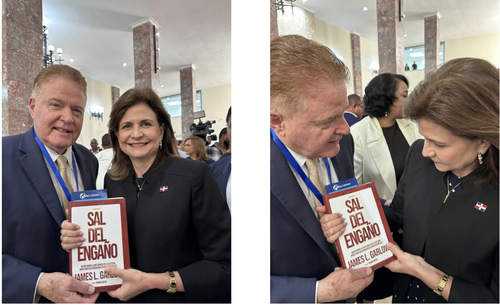 I gave the Spanish version of REVERSED (in Spanish, title is “Sal Del Engaña” or “Don’t Be Deceived”) to the President of the Dominican Republic.