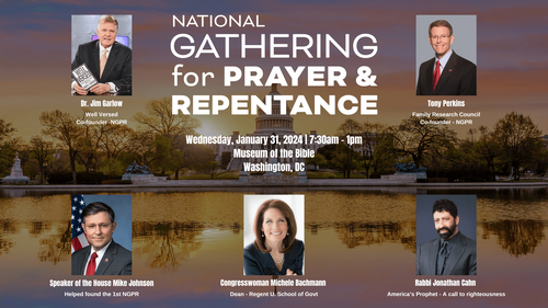 “In November of 2022, I called Tony Perkins, and Congressman Mike Johnson, so see what their thoughts were about calling government and faith leaders together to pray for repentance. The National Gathering for Prayer and Repentance is not a prayer breakfast. This is a 'no-breakfast prayer.' The prayers are about repentance. For personal sins. For sin in the church. For America’s sins. We focus on the vertical, that is, God. We don’t applaud for people. We only applaud for God…at the end. We don’t have speeches or sermons, except designated persons to call us to serious repentance. We don’t even introduce people. The spotlight is on God. People lead in prayer. To Him. For one minute. Sincere heartfelt prayer. Intense prayer. As if the nation depends on it. Because it does.”