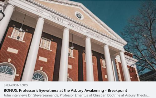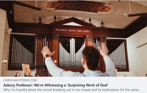 Jim Garlow: Christianity Today ran an exceptionally good article on the revival by Asbury Theological Seminary Professor Tom McCall. For those who know the CT mag in the last few years, that is reason for praising God. Yes!