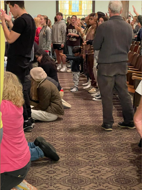 Completely Spirit led through the Students. At this time, people from many church backgrounds,(Catholics to Chaismatics) are here. No need for any suits to try and control anything, Holy Spirit is speaking into anything that may seem out of order. He’s leading! May we stay out of the way. He’s got this!