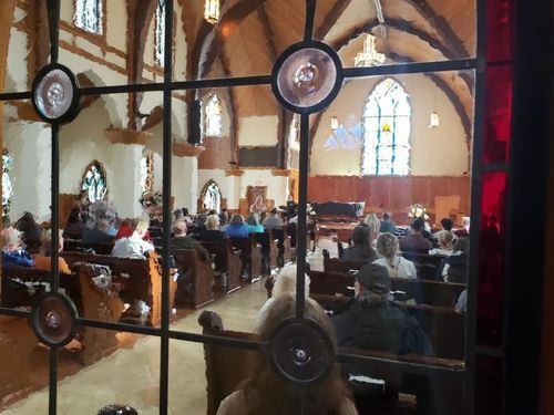 --I don't want to forget the Latino family--grandpa, dad, uncle, kids, mama--who when they made it into Hughes after what must have been a wait of hours--didn't even go to their seats. They went immediately to the altar and collapsed in front of it. We saw this again and again.