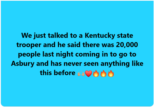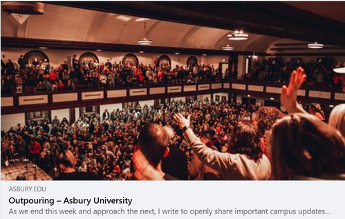 Asbury Revival Update: What is happening in Asbury is real. How do we know? Because genuine repentance is occurring. Secondly spread the word to all your friends. May all of us be deeply impacted as well. Lastly, to help you do that we have created a location with many of the sights and sounds of this move of God so you can share it. If there other sites like this, share them too. Spread the word of this work of Almighty God.