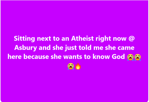 Students from 200+ college campuses came to Asbury to experience it. It continues to spread across the world. My phone is non stop with reports of how God is moving…ESPECIALLY AMONG YOUNG PEOPLE.