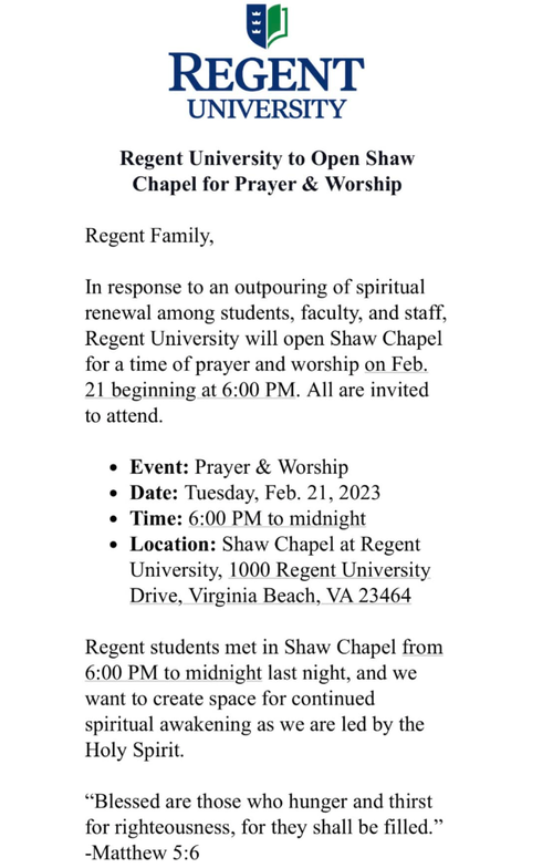 These video recordings are from local eyewitnesses at Asbury University from February 8, 2023 - To Date