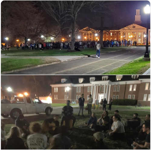 Joshua Harp: Students at Union who want to worship the Lord are told they can’t use the chapel, they can’t use the lawn, they can’t worship on campus but they move into the road. Love seeing people pursuing the Lord and worshipping Him. Isaiah 43:19 “Behold, I am doing a new thing;