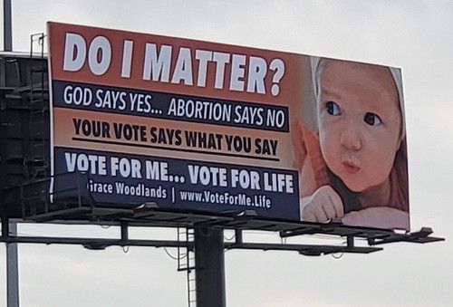 Now, I ask for your response. Will you forward this newsletter to your friends? Also, will you post the video of the children saying “Vote for me,” the six-minute video of Pastor Steve preaching, and the picture of the billboard on your social media? If you want to put up a pro-life billboard in your city, contact Shari May at sharimay@gracewoodlands.com. You will be provided with the billboard artwork for free, and then advised on how to proceed. We must push back against the dark, murderous spirit.