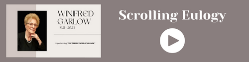 But first, here is a scrolling eulogy of her remarkable life, the 102 years from 1921 to 2023. (NOTE: We want to say a special thank you to Debbie Augustine and Joshua Garlow who helped prepare so many of the items for the Memorial Services.)