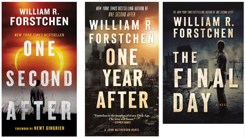 2. EMP: Congressman Franks is one of the world’s top experts on Electromagnetic Pulse. Trent covered this topic, not to scare you, but so we could understand it. I could not comprehend how it was possible that if we lost electrical power, 90% of Americans would be dead within one year, until I read William Forstchen’s book One Second After (pictured above). Forstchen has since written two more books in his EMP trilogy.