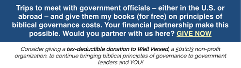 We meet with elected officials for one reason: to bring principles of biblical governance to government leaders. It is a profound honor to meet with these governmental leaders.