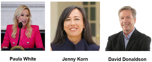 In addition, Paula White, Jenny Korn, and David Donaldson of the White House House Faith Office, are giving leadership to this remarkable project.