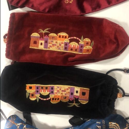 Each shofar will include an embroidered velvet Jerusalem design Shofar Carry Bag.