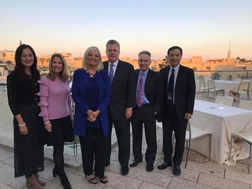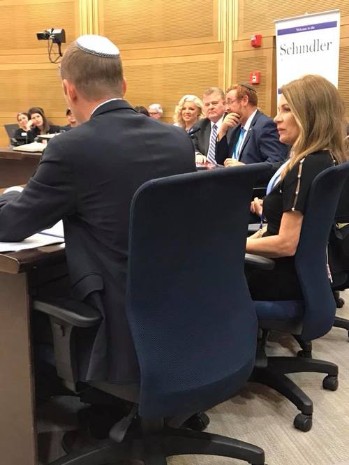Congresswoman Michele Bachmann, Member of the Knesset Rabbi Yehudah Glick, Dr. Jim Garlow, Rosemary Schindler Garlow and (far left) Tsofia Nahon listening to the remarkable teaching of Rabbi Tuly Weisz