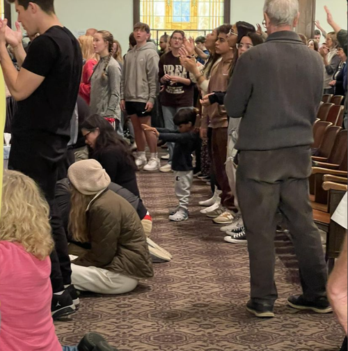 While the definition is a bit local church-centric, it still helps us understand that what we're seeing at Asbury right now is the early stages of a revival. It is clear that a new love affair with Jesus Christ is taking place in Wilmore. Through the power of the Holy Spirit, people, mostly young people, are experiencing the love of Jesus in for the first time or in such powerful ways that they are beginning to love him back. Jesus is glorified. For this is what happens when Holy Spirit shows up! He points us to Jesus (Jn. 15:26). He removes the veil and we begin to gaze at him and are thereby transformed, and in this case, collectively (2 Cor. 3:16-18). This is why the slogan at the altar at Hughes, "Holiness unto the Lord," which also points to the rich Wesleyan-Holiness heritage for which Asbury is connected, sounds more like a prophetic unction to what is currently happening.