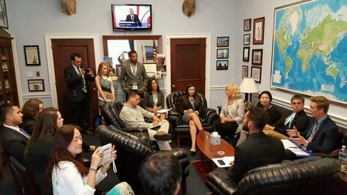 Rosemary Schindler Garlow works to assist Young Adults to come to Washington, D.C. – here pictured meeting with Members of Congress