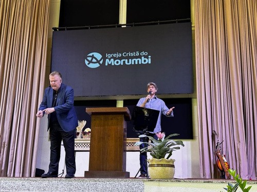 Dr. Garlow speaking in Taubate, Brazil