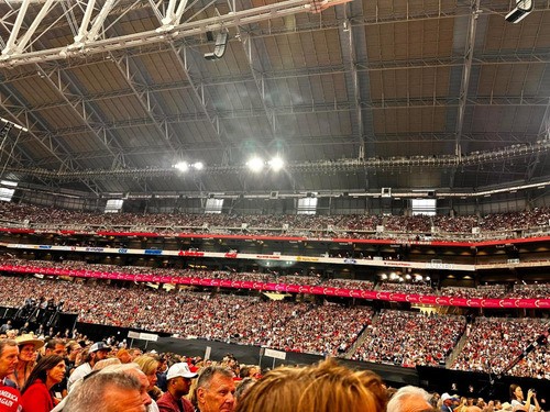 I got out and joined thousands and thousands of others walking. Candidly, I was not fully oriented on exactly where to go because of the newly installed fences or gates around the arena. I had been invited to attend by “Turning Point Pastors,” and was told which gate to enter, but I was not sure where the Secret Service crowd fencing would allow us to get in.