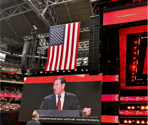 Secretary of State Marco Rubio laid out the story of the life of Jesus, the crucifixion, His death for our sins, the resurrection, the return of Jesus, and how to receive forgiveness of sins, as clear as any preacher ever has. It was remarkable. This was one of the profound moments of the event.