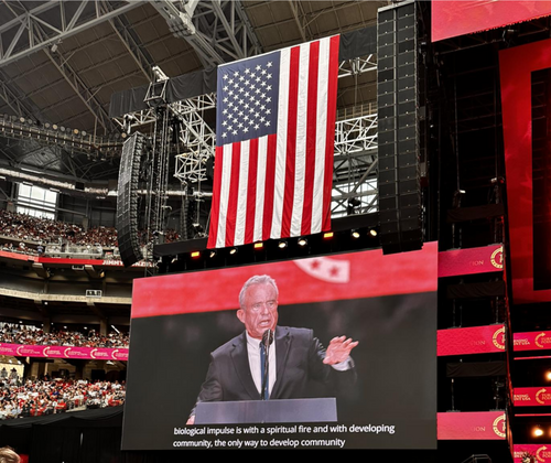 Secretary of HHS Robert Kennedy challenged the crowd to live a life of devotion, with “spiritual fire.” He told the story of his daughter reporting that his granddaughter was leaving for a trip a few days after Charlie Kirk was martyred. When she was asked why she packed her Bible, the granddaughter reported to her mother that it was “because of Charlie Kirk.”