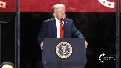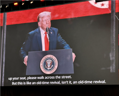 Tyler Bowyer, COO of Turning Point Action, shared the early days, the humble beginnings of Turning Point. The stories were remarkable. Turning Point, with is current 1,000 employees, is a miraculous story. And he reported that Charlie always wanted to bring the Holy Spirit into a Trump rally. Bowyer said Charlie must be having some FOMO (fear of missing out) because that is what the memorial service had become.