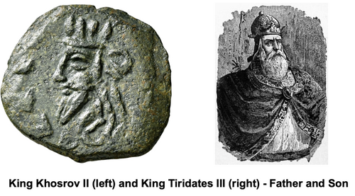 King Khosrov II was assassinated by Anak in 252 AD. Khosrov’s son assumed the throne as King Tiridates III.