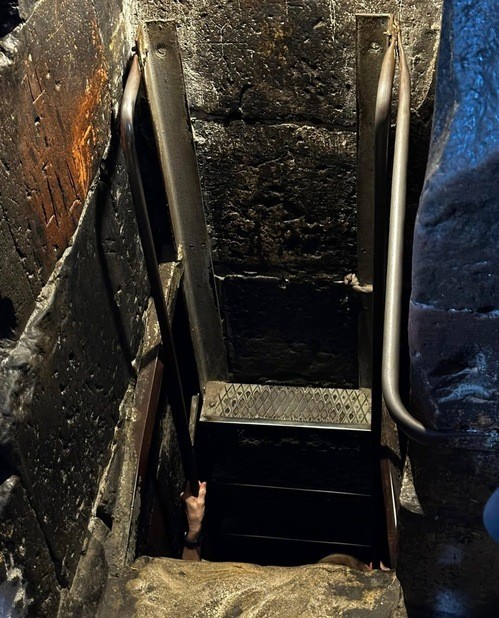 A modern ladder has been added so people can go down into the pit.